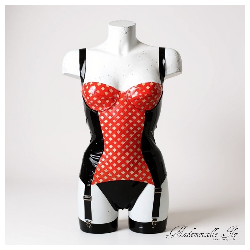 Soutien gorge balconnet mettant la poitrine en valeur. Larges bretelles réglables pour un confort optimum. La guêpière s'ouvre au dos par une fermeture éclair.